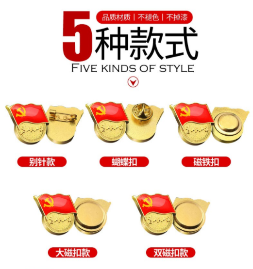 國為 銘牌 鍍金不褪色 標(biāo)準(zhǔn)款新黨員黨徽胸章別針黨徽 厚度2mm 別針款 CT-002/個(gè)