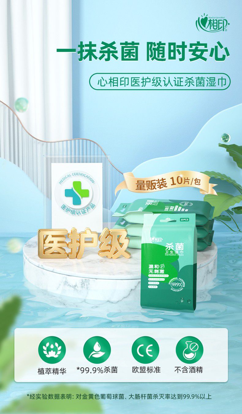 心相印/MindActUponMind 濕巾/手帕紙 獨立包裝10片 殺菌消毒 XCA001 /包
