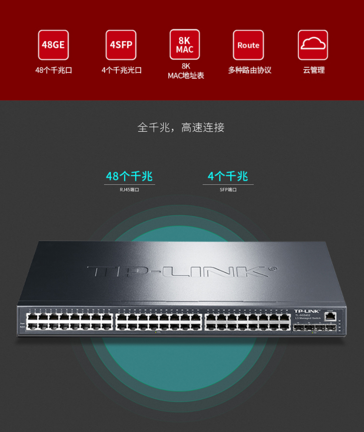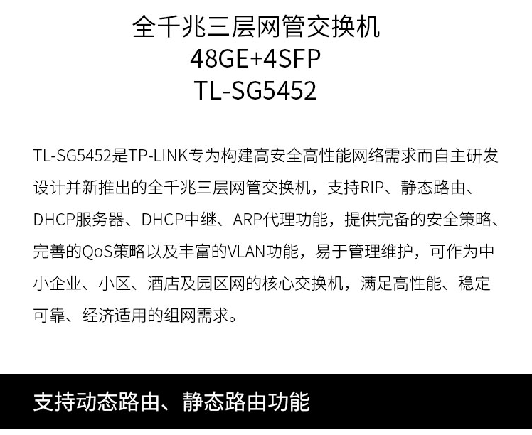 以太網(wǎng)交換機(jī)普聯(lián)/TP-LINK三層網(wǎng)管型48電口4光纖光口企業(yè)級(jí)交換機(jī)TL-SG5452/臺(tái)