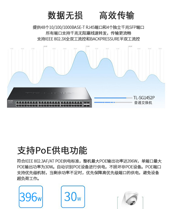 以太網(wǎng)交換機普聯(lián)/TP-LINK52口全千兆POE交換機48電口4光口企業(yè)級接入層交換機TL-SG1452P/臺