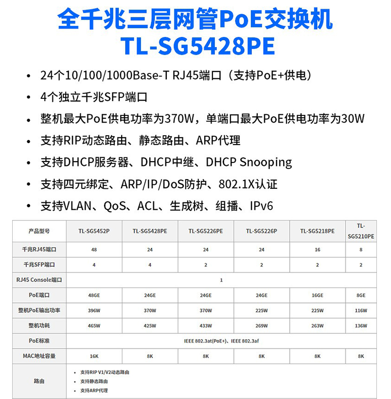 以太網(wǎng)交換機(jī)普聯(lián)/TP-LINK24口全千兆4個(gè)SFP光纖口企業(yè)網(wǎng)絡(luò)匯聚三層網(wǎng)管POE交換機(jī)TL-SG5428PE/臺(tái)