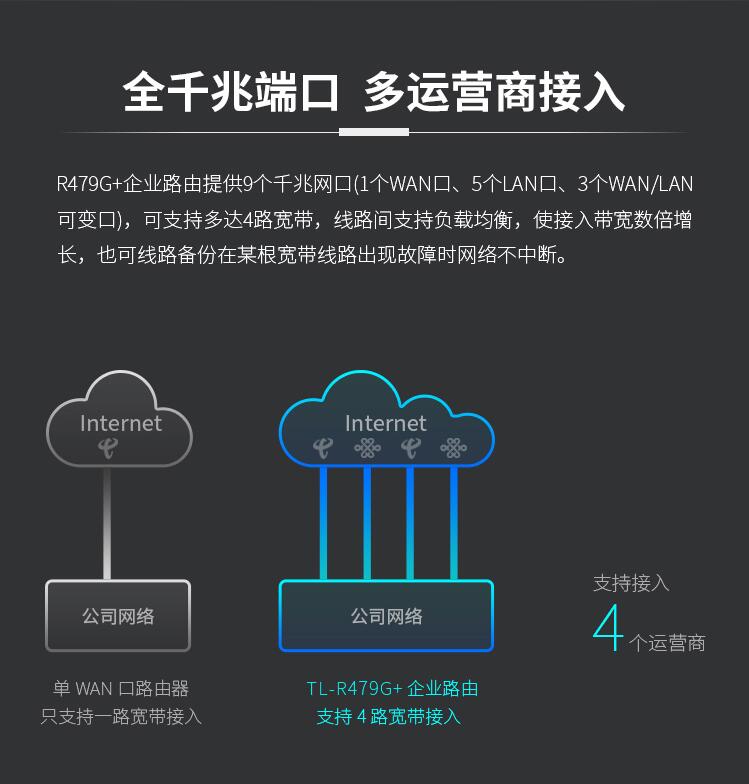 路由器普聯(lián)/TP-LINK多WAN口全千兆9口有線路由器TL-R479G+/臺