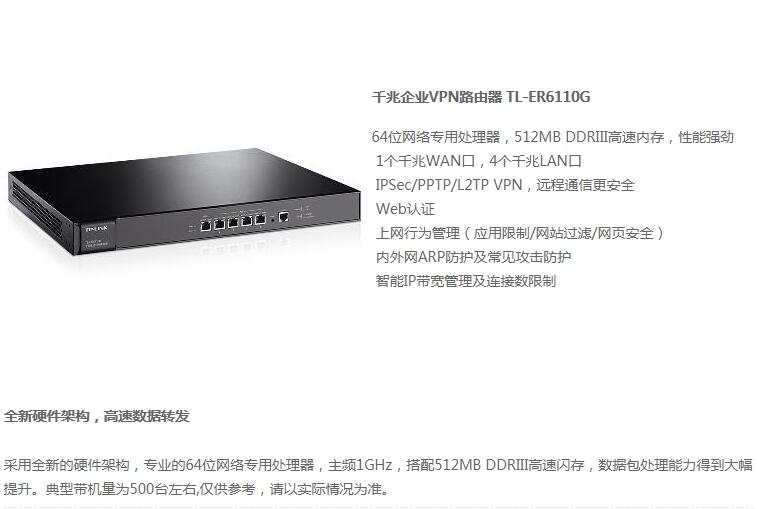 路由器普聯(lián)/TP-LINK企業(yè)級(jí) 千兆VPN路由器 防火墻 AP管理TL-ER6110G/臺(tái)