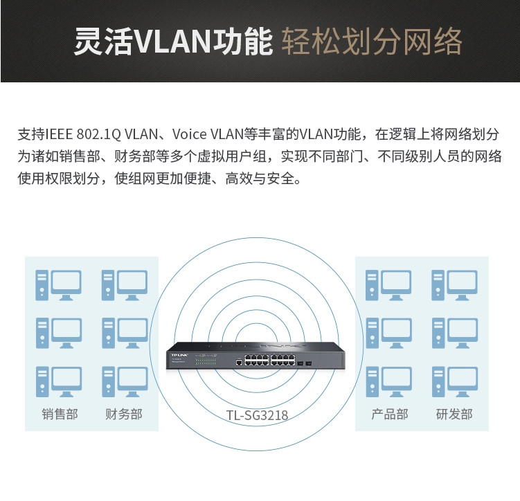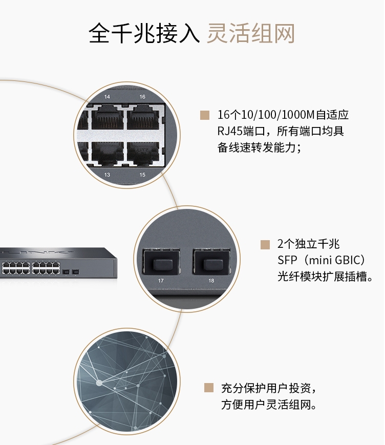 以太網(wǎng)交換機普聯(lián)/TP-LINK16口千兆二層匯聚交換機帶2光口可網(wǎng)管VLAN企業(yè)級TL-SG3218/臺