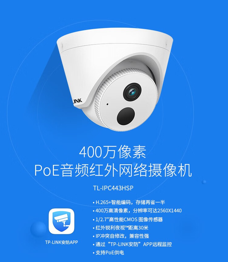 監(jiān)控?cái)z像機(jī)普聯(lián)/TP-LINK紅外夜視拾音半球 有線監(jiān)控 高清夜視TL-IPC433HSP/臺