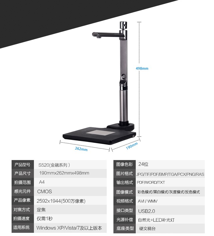 掃描儀良田/eloam高拍儀 雙攝像頭 500萬像素高清高速快拍儀速拍儀掃描儀S520/臺