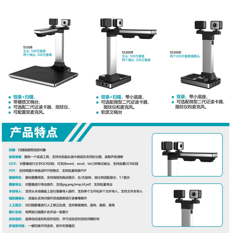 掃描儀良田/eloam高拍儀三攝像頭500萬(wàn)像素掃描儀 影音雙錄S530B/臺(tái)