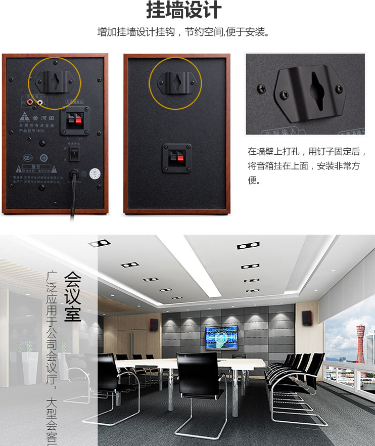 金河田/Goldenfield電腦多媒體電子教學(xué)音響木質(zhì)音箱壁掛/桌面式電教會議室音響M30/臺