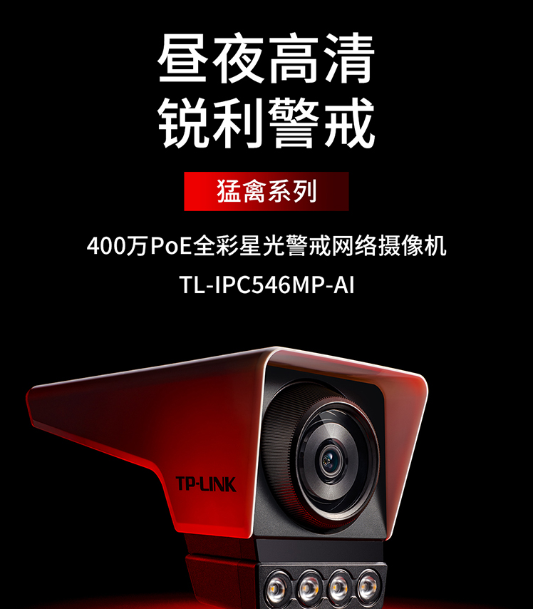 監(jiān)控?cái)z像機(jī)普聯(lián)/TP-LINK400萬全彩星光夜視 POE/DC供電 室外戶外防水高清監(jiān)控?cái)z像頭TL-IPC546MP-AI4/AI6/臺